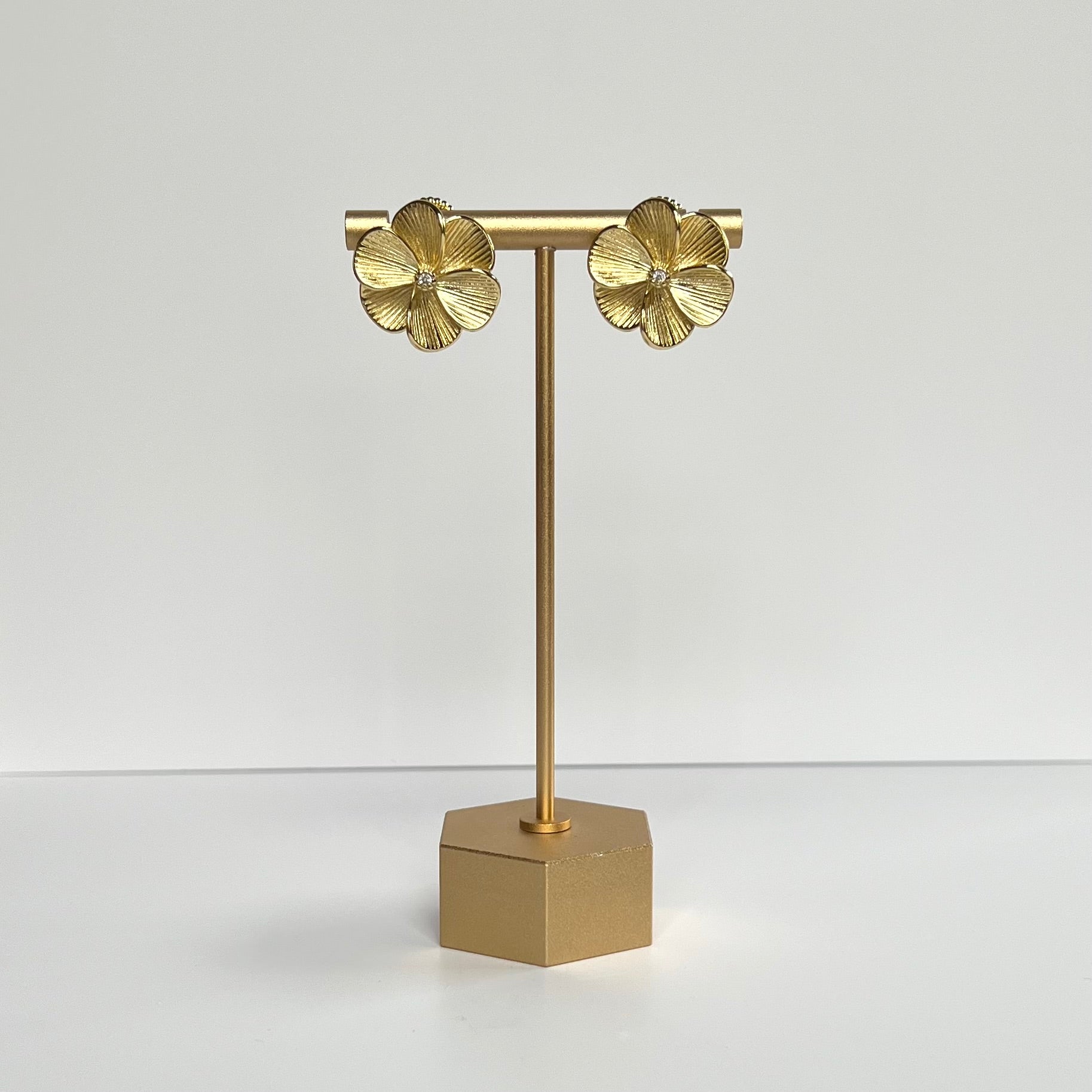 These beautiful earrings feature large gold filled flowers on a post, adorned with a CZ stone center.Ā Pair it with the matching Judith Necklace for a real show stopper, as Judith was herself!